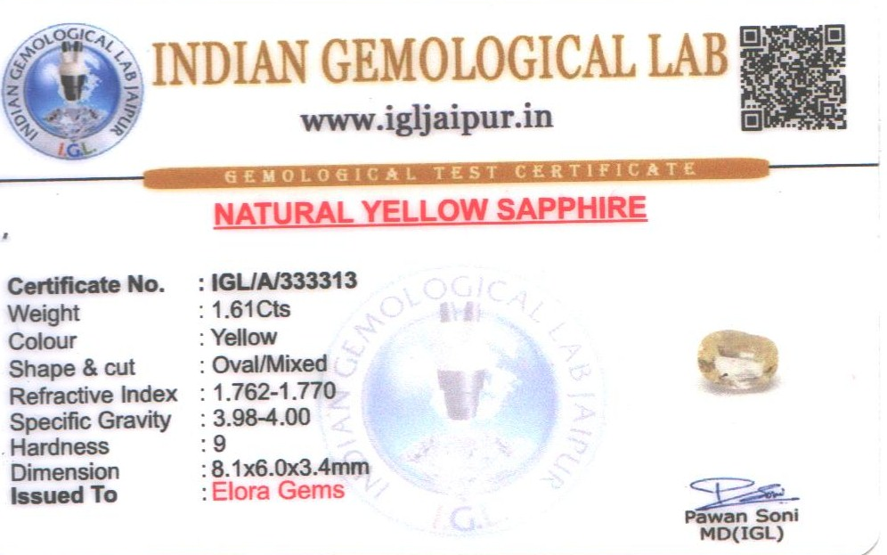 Yellow Sapphire (Pushparag) 8x6 MM 1.61 carats