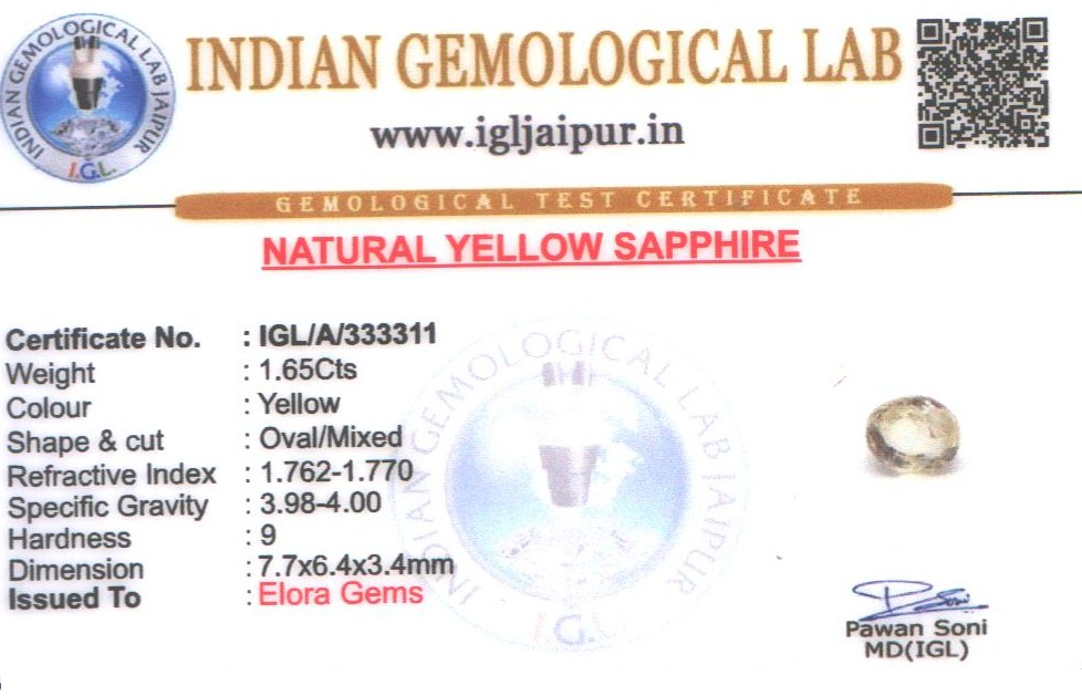 Yellow Sapphire (Pushparag) 8x6 MM 1.65 carats