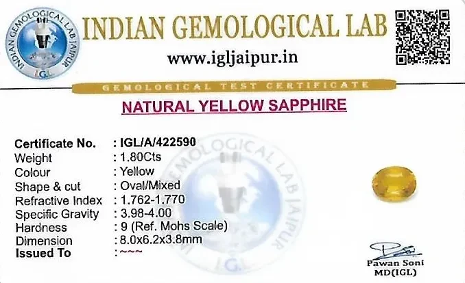 Natural Yellow Sapphire (Pushparag) weighing 1.8 carats In Oval from Thailand