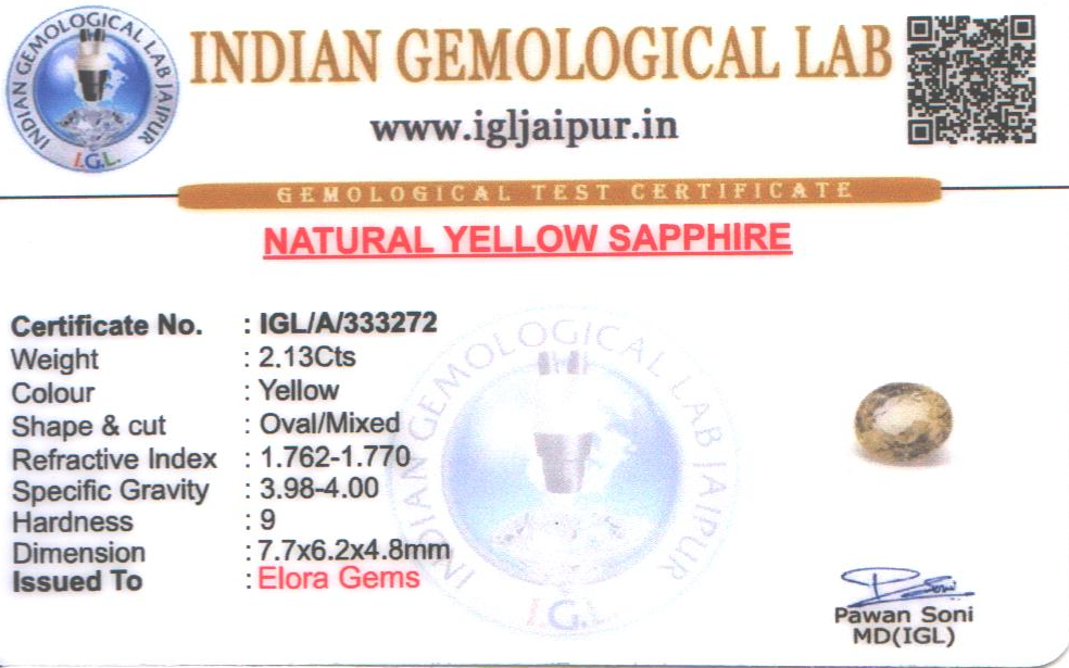 Yellow Sapphire (Pushparag) 8x6 MM 2.13 carats