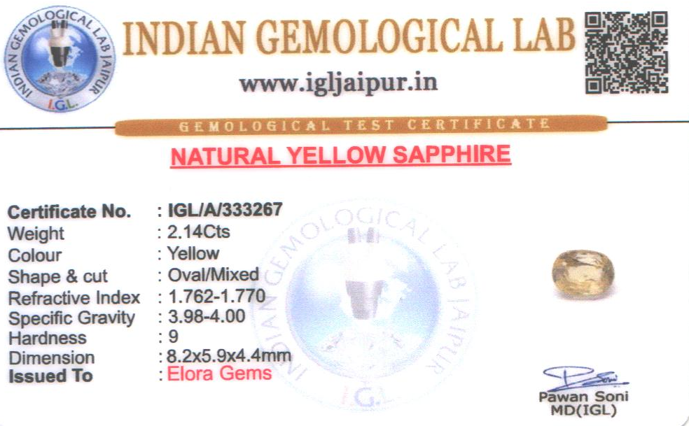 Yellow Sapphire (Pushparag) 8x6 MM 2.14 carats