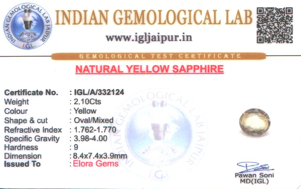 Yellow Sapphire (Pushparag) 8x7 MM 2.1 carats