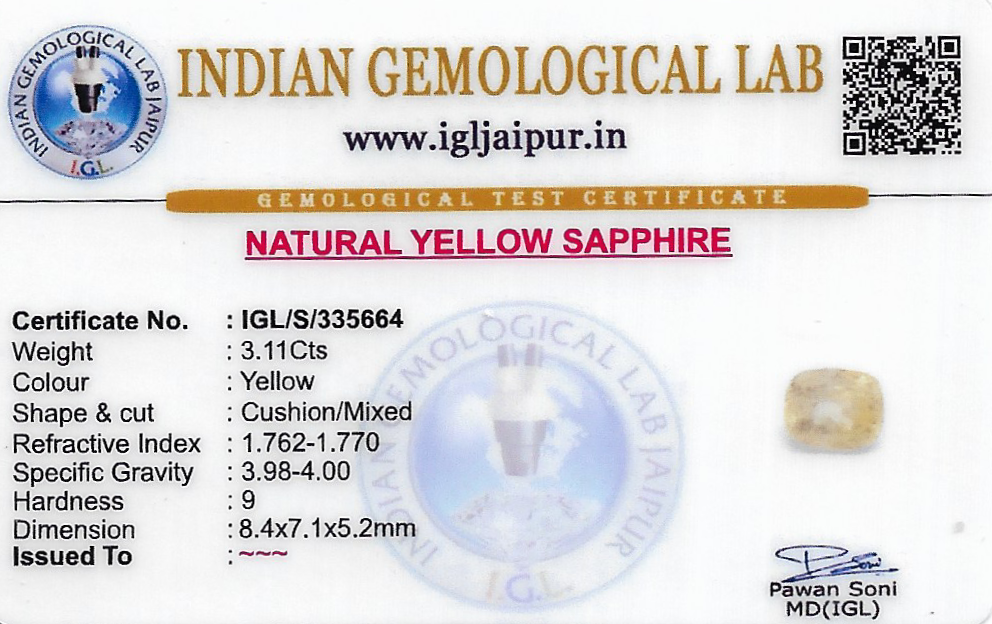 Natural Yellow Sapphire (Pushparag) weighing 3.11 carats In Cushion from Sri Lanka (Ceylon)