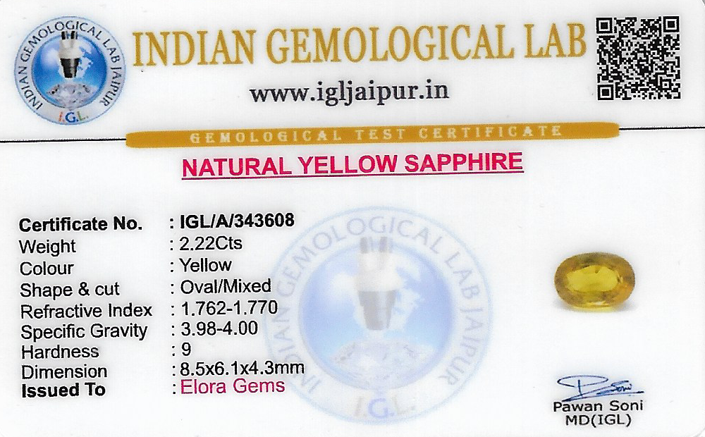 Natural Yellow Sapphire (Pushparag) weighing 2.22 carats In Oval from Thailand