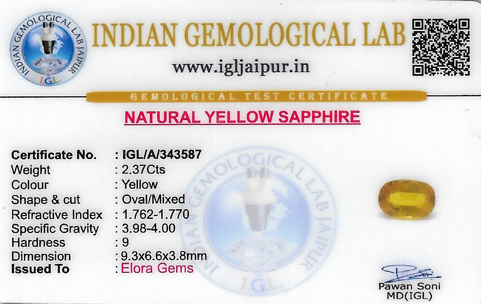 Natural Yellow Sapphire (Pushparag) weighing 2.37 carats In Oval from Thailand