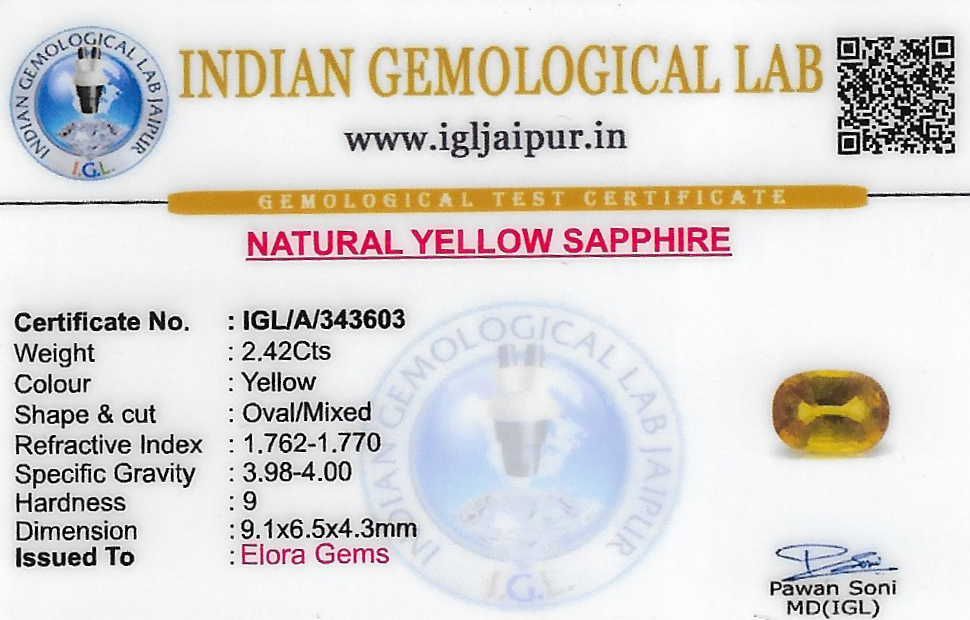 Natural Yellow Sapphire (Pushparag) weighing 2.42 carats In Oval from Thailand