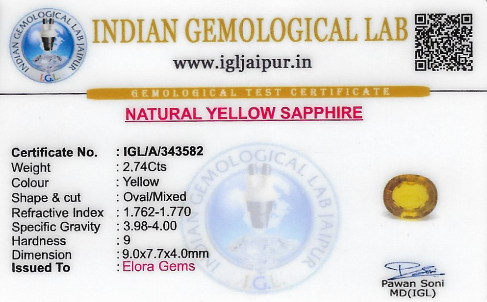 Natural Yellow Sapphire (Pushparag) weighing 2.74 carats In Oval from Thailand