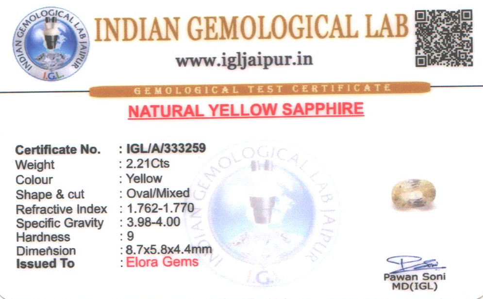 Natural Yellow Sapphire (Pushparag) weighing 2.21 carats In Oval from Sri Lanka (Ceylon)