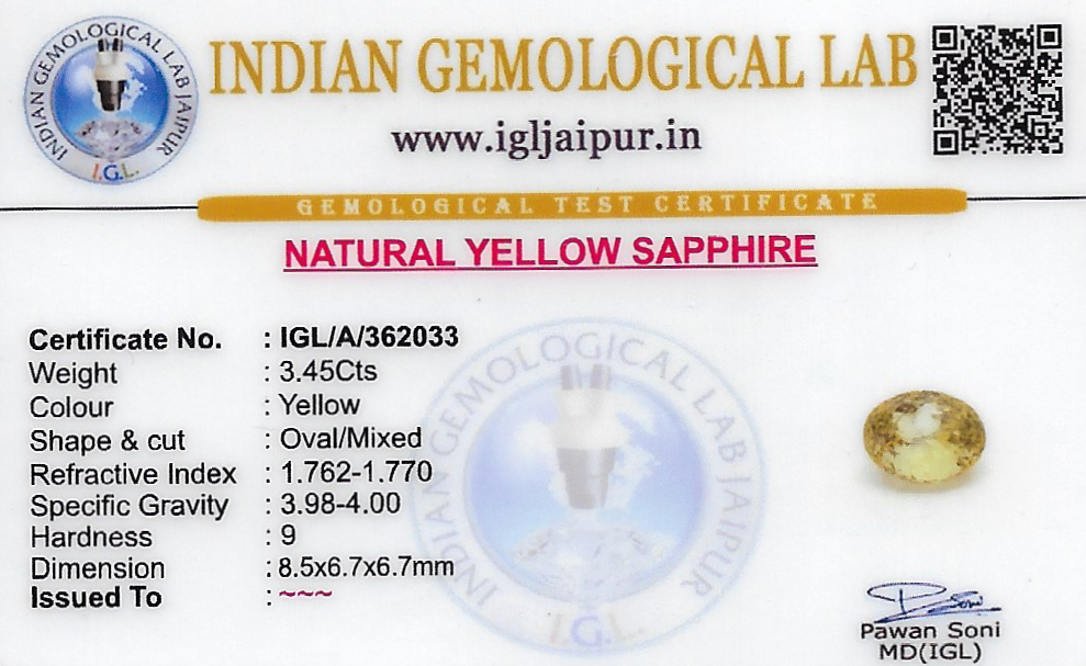 Yellow Sapphire (Pushparag) 9x7 MM 3.45 carats