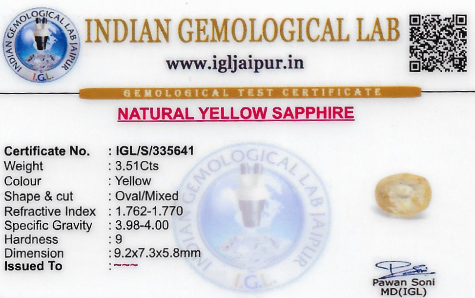 Yellow Sapphire (Pushparag) 9x7 MM 3.51 carats