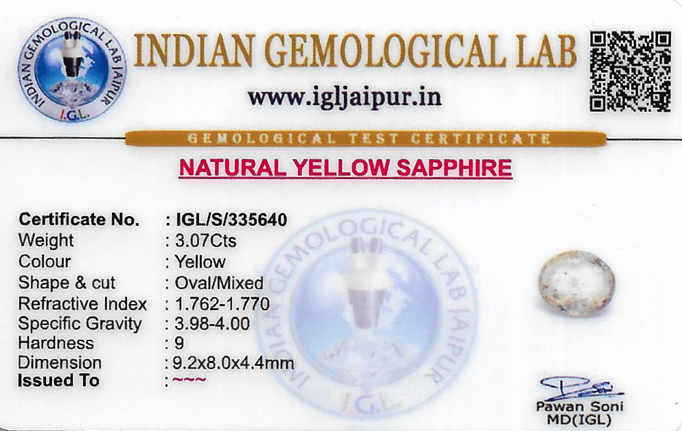 Natural Yellow Sapphire (Pushparag) weighing 3.07 carats In Oval from Sri Lanka (Ceylon)