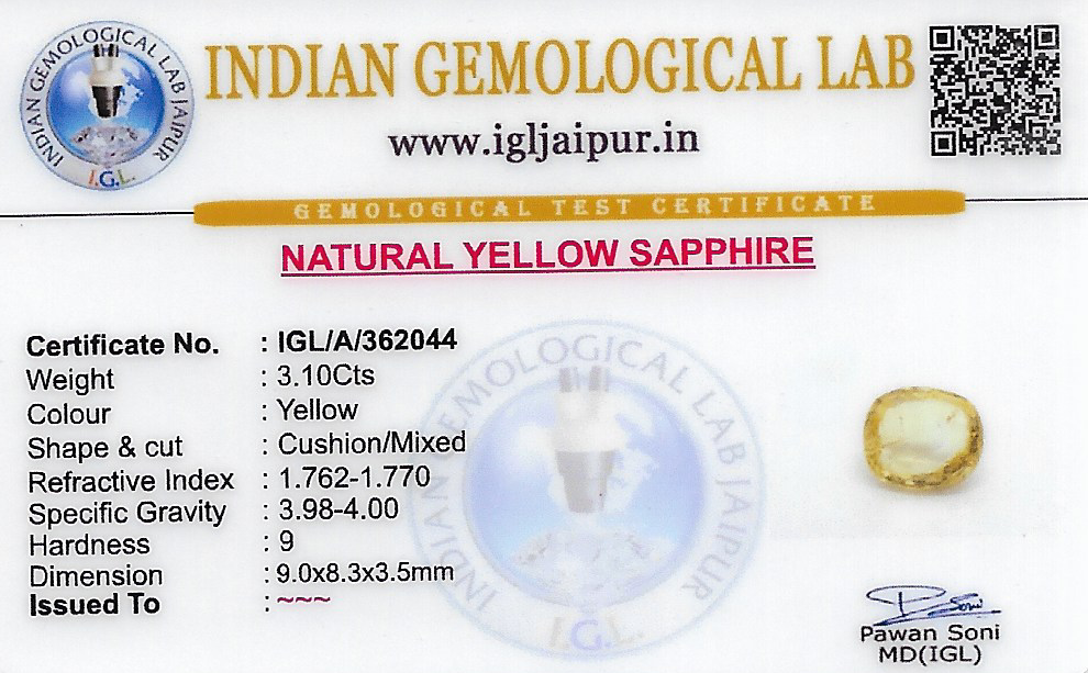 Yellow Sapphire (Pushparag) 9x8 MM 3.1 carats