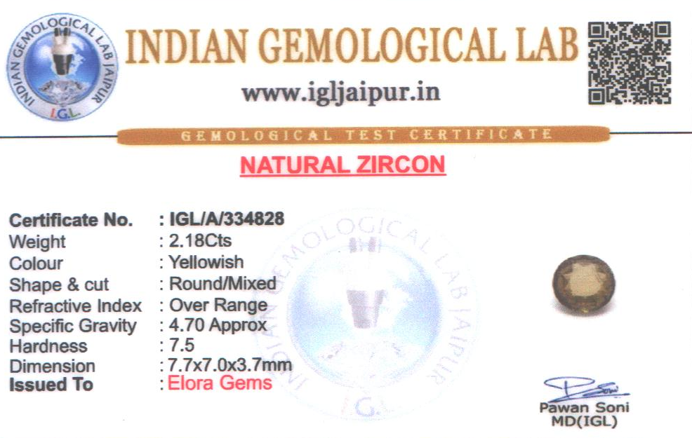 Natural Zircon weighing 2.18 carats In Round