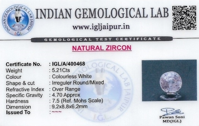 Natural Zircon weighing 5.21 carats In Oval from Cambodia